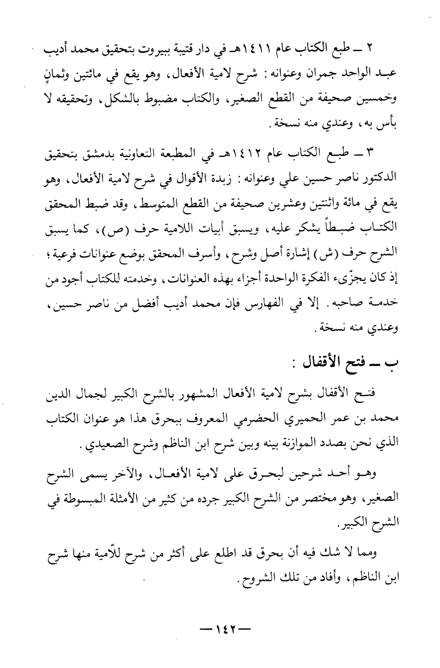 فتح الأقفال بشرح لامية الْأَفْعَال الْمَشْهُور بالشرح الْكَبِير لجمال الدّين مُحَمَّد بن عمر الْحمير الْحَضْرَمِيّ الْمَعْرُوف ببحرق هَذَا هُوَ عنوان الْكتاب الَّذِي نَحن بصدد الموازنة بَينه وَبَين شرح ابْن النَّاظِم وَشرح الصعيدي.