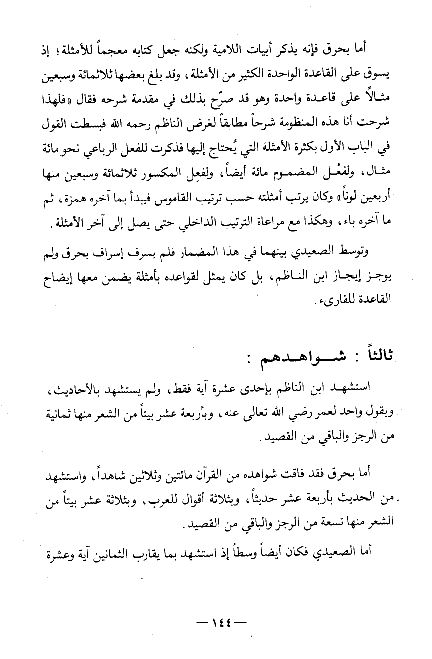 أما الصعيدي فَكَانَ أَيْضا وسطا إِذْ اسْتشْهد بِمَا يُقَارب الثَّمَانِينَ آيَة وَعشرَة