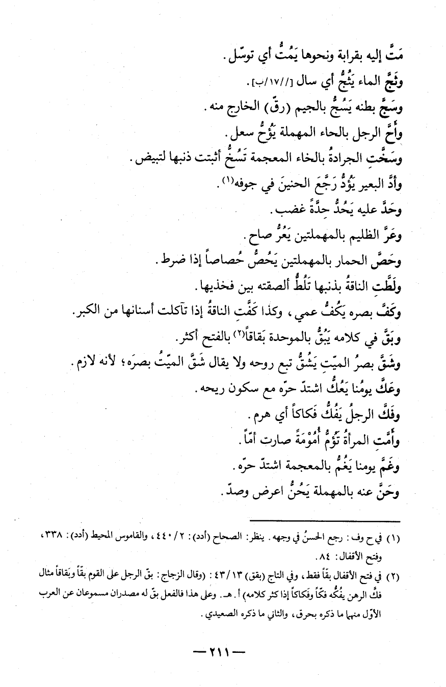 2 - فِي فتح الأقفال بقّاً فَقَط، وَفِي التَّاج (بقق) 13/43: "وَقَالَ الزّجاج: بقّ الرجل على الْقَوْم بقّاً وبَقاقاً مِثَال فك الرَّهْن يفكُّه فكّاً وفَكاكاً إِذا كثر كَلَامه"ا?. وعَلى هَذَا فالفعل بقّ لَهُ مصدران مسموعان عَن الْعَرَب الأوّل مِنْهُمَا مَا ذكره بحرق، وَالثَّانِي مَا ذكره الصعيدي.