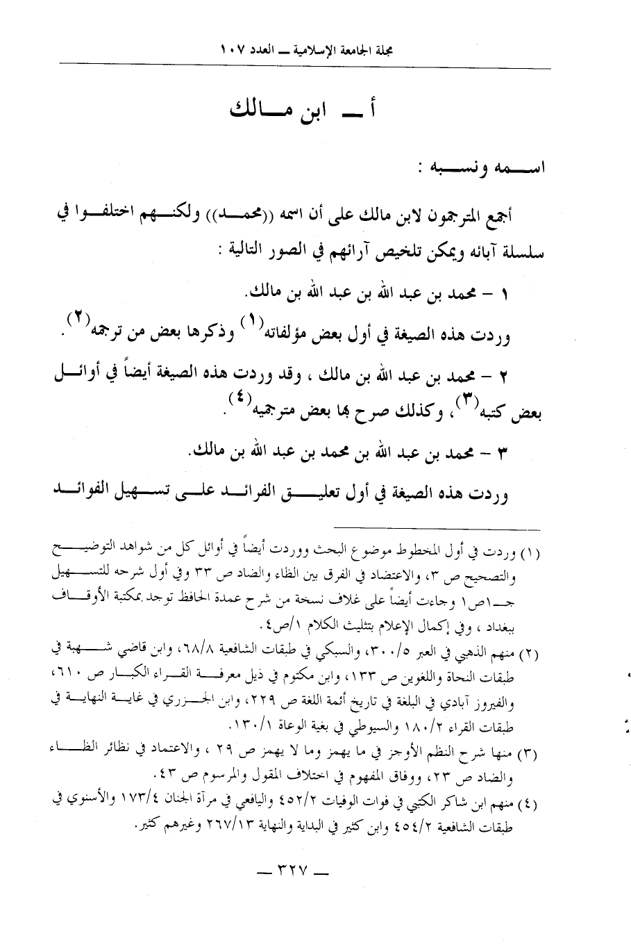 2 - مُحَمَّد بن عبد الله بن مَالك، وَقد وَردت هَذِه الصِّيغَة أَيْضا فِي أَوَائِل بعض كتبه3، وَكَذَلِكَ صرح بهَا بعض مترجميه4.