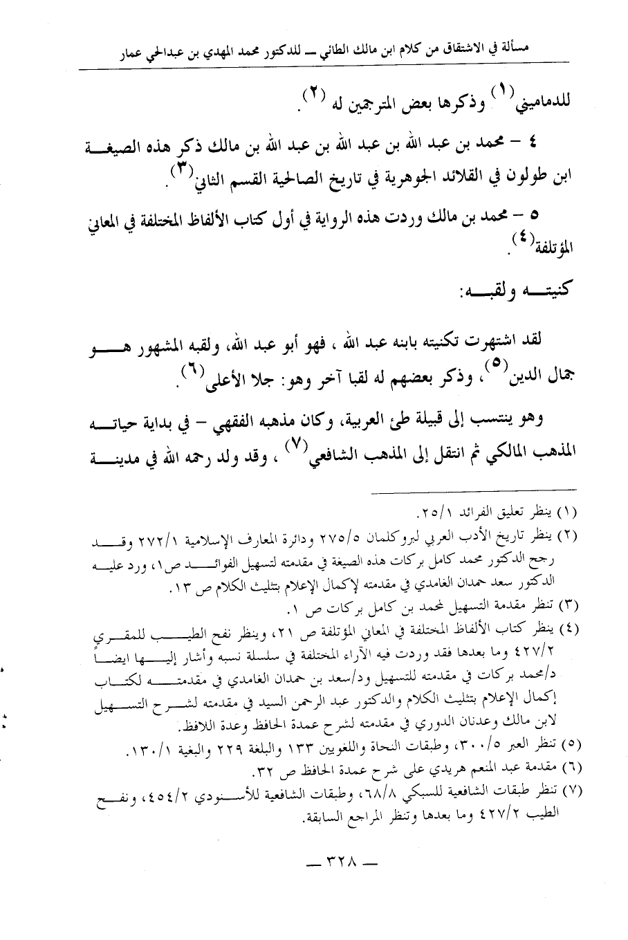 2 ينظر تَارِيخ الْأَدَب الْعَرَبِيّ لبروكلمان 5/275 ودائرة المعارف الإسلامية 1/272 وَقد رجح الدكتور مُحَمَّد كَامِل بَرَكَات هَذِه الصِّيغَة فِي مقدمته لتسهيل الْفَوَائِد ص1، ورد عَلَيْهِ الدكتور سعد حمدَان الغامدي فِي مقدمته لإكمال الْإِعْلَام بِتَثْلِيث الْكَلَام ص 13.