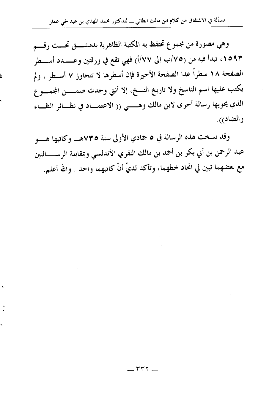 كتاب من ذخائر ابن مالك في اللغة مسألة من كلام الإمام ابن مالك في الاشتقاق