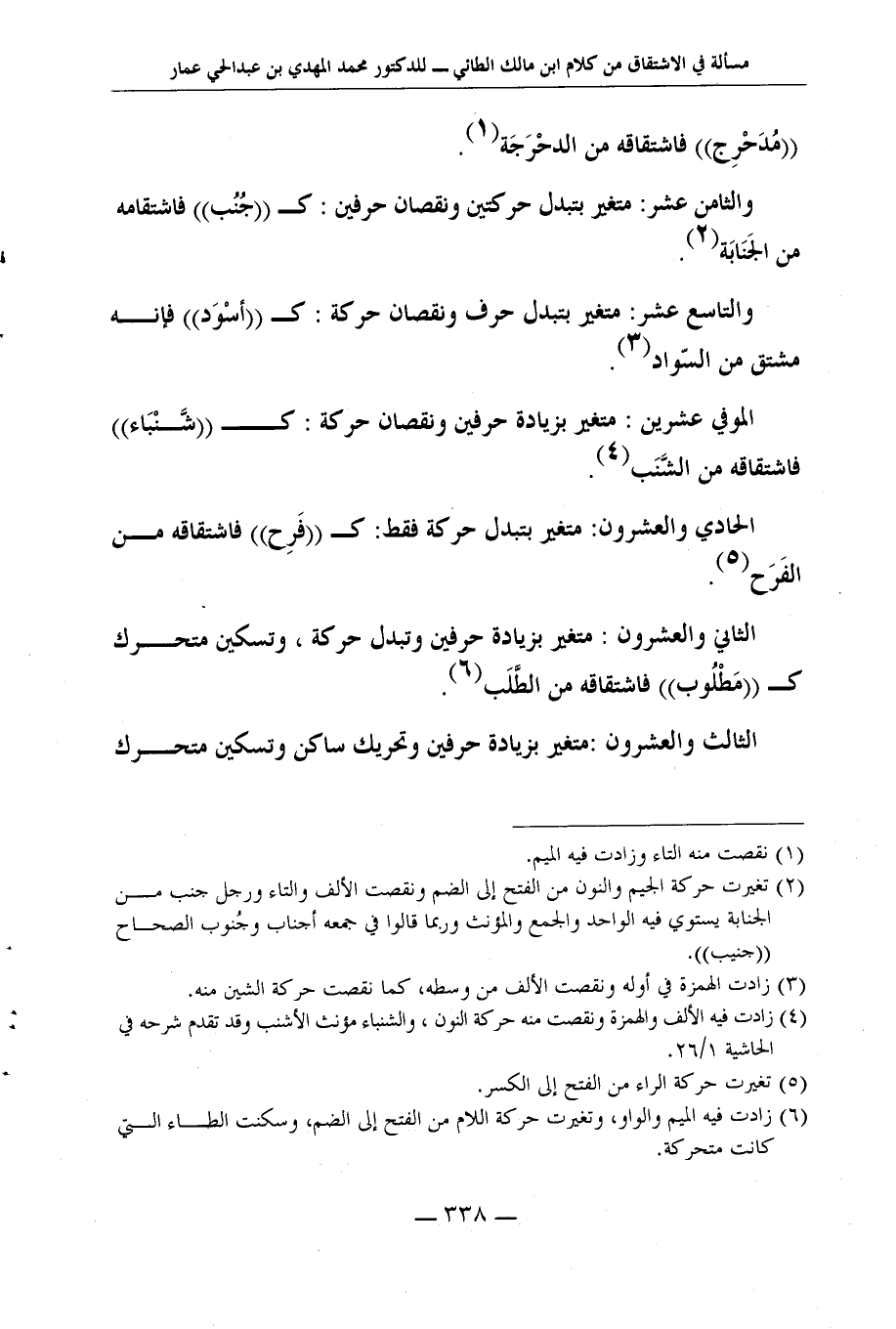 كتاب من ذخائر ابن مالك في اللغة مسألة من كلام الإمام ابن مالك في الاشتقاق