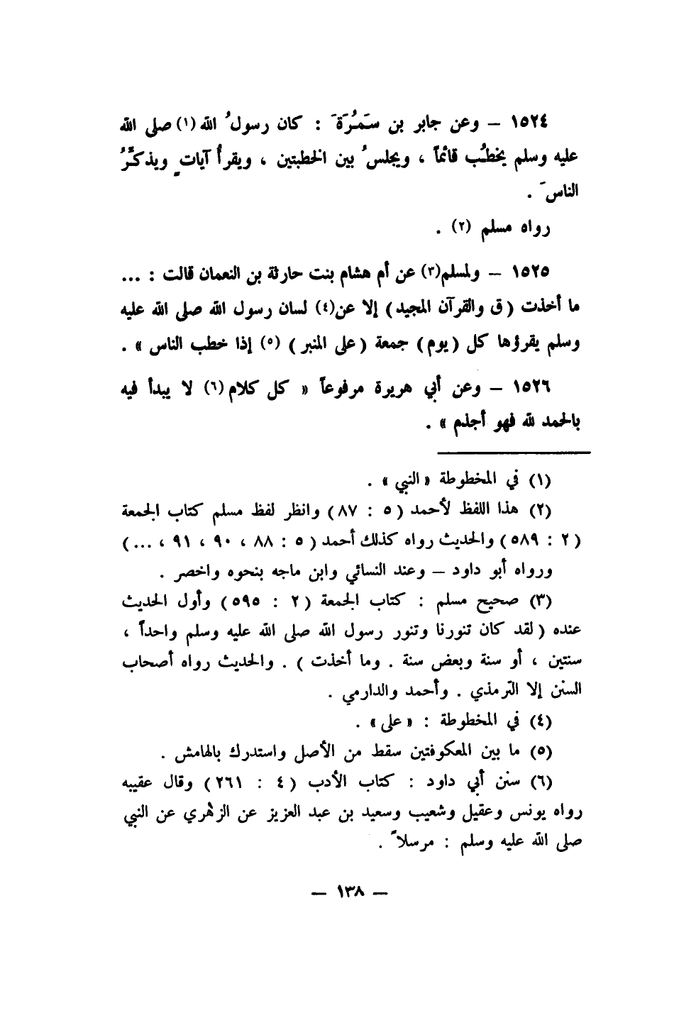 2 هذا اللفظ لأحمد (5/87) ، وانظر: لفظ مسلم: كتاب الجمعة (2/589) ، والحديث رواه كذلك أحمد (5/88, 90, 91,....) ، ورواه أبو داود، وعند النسائي وابن ماجة بنحوه وأخصر.