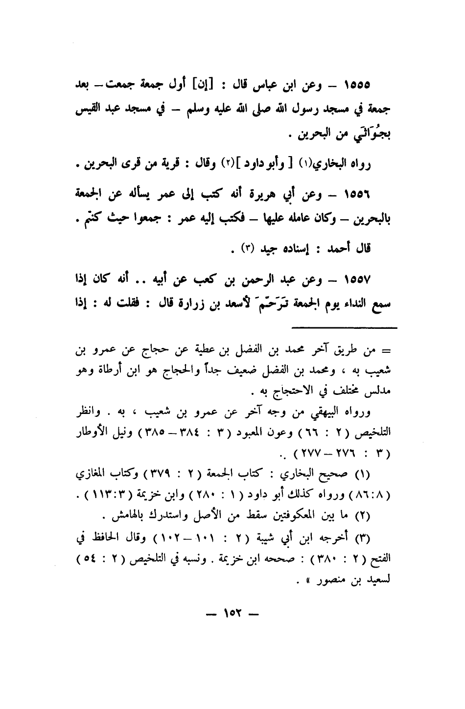 1556- وعن أبي هريرة: "أنه كتب إلى عمر يسأله عن الجمعة بالبحرين - وكان عامله عليها - فكتب إليه عمر: جمعوا حيث كنتم".