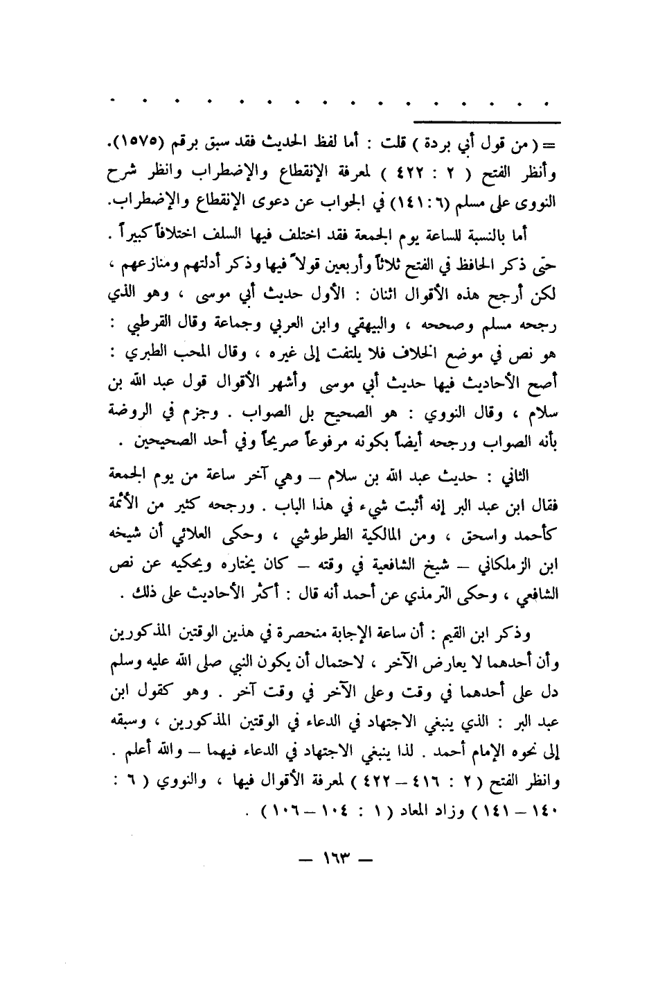 وانظر: الفتح (2/416، 422) لمعرفة الأقوال فيها, والنووي (6/140، 141) ، وزاد المعاد (1/104، 106) .