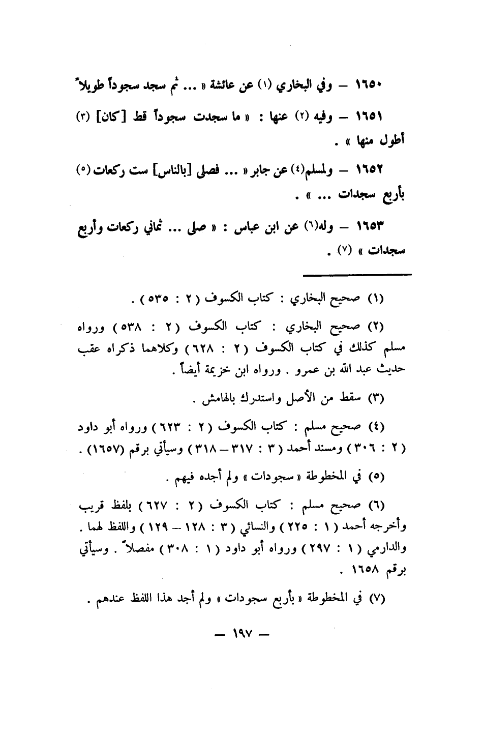 1650- وفي البخاري عن عائشة: " ... ثم سجد سجوداً طويلاً".