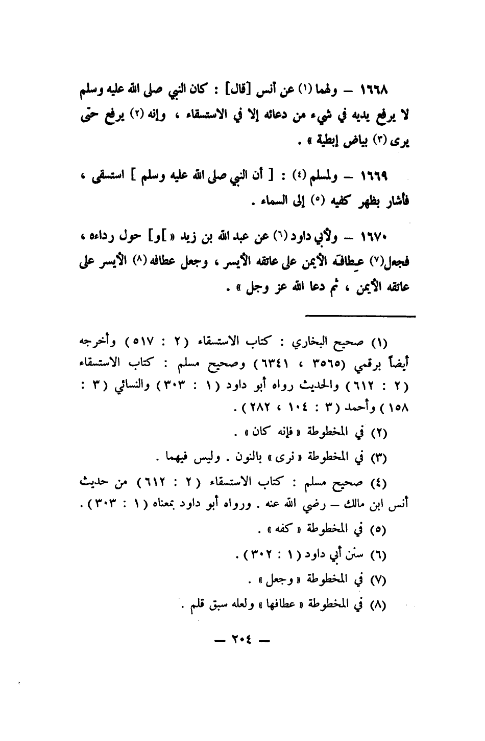 1669- ولمسلم: 4 "أن النبي صلى الله عليه وسلم استسقى، فأشار بظهر كفيه إلى السماء" 5.
