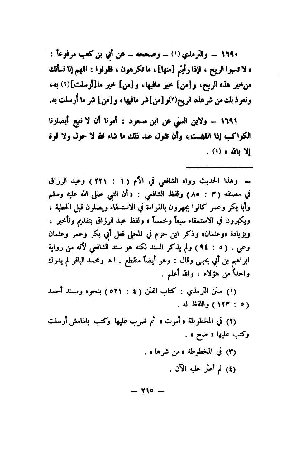 1691- ولابن السني عن ابن مسعود: "أُمرنا أن لا نتبع أبصارنا الكواكب إذا انقضت، وأن نقول عند ذلك: ما شاء الله لا حول ولا قوة إلا بالله" 4.