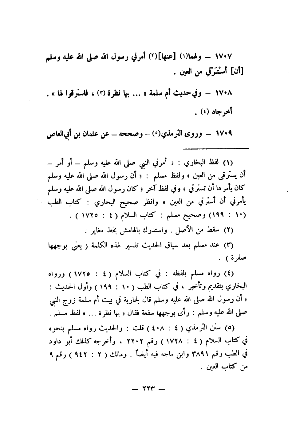 3 رواه مسلم بلفظه: في كتاب السلام (4/1725) ، ورواه البخاري بتقديم وتأخير, في كتاب الطب (10/199) ، وأول الحديث: "أن رسول الله ? قال لجارية في بيت أم سلمة زوج النبي ?، رأى بوجهها سفعة فقال: بها نظرة ... "، لفظ مسلم.
