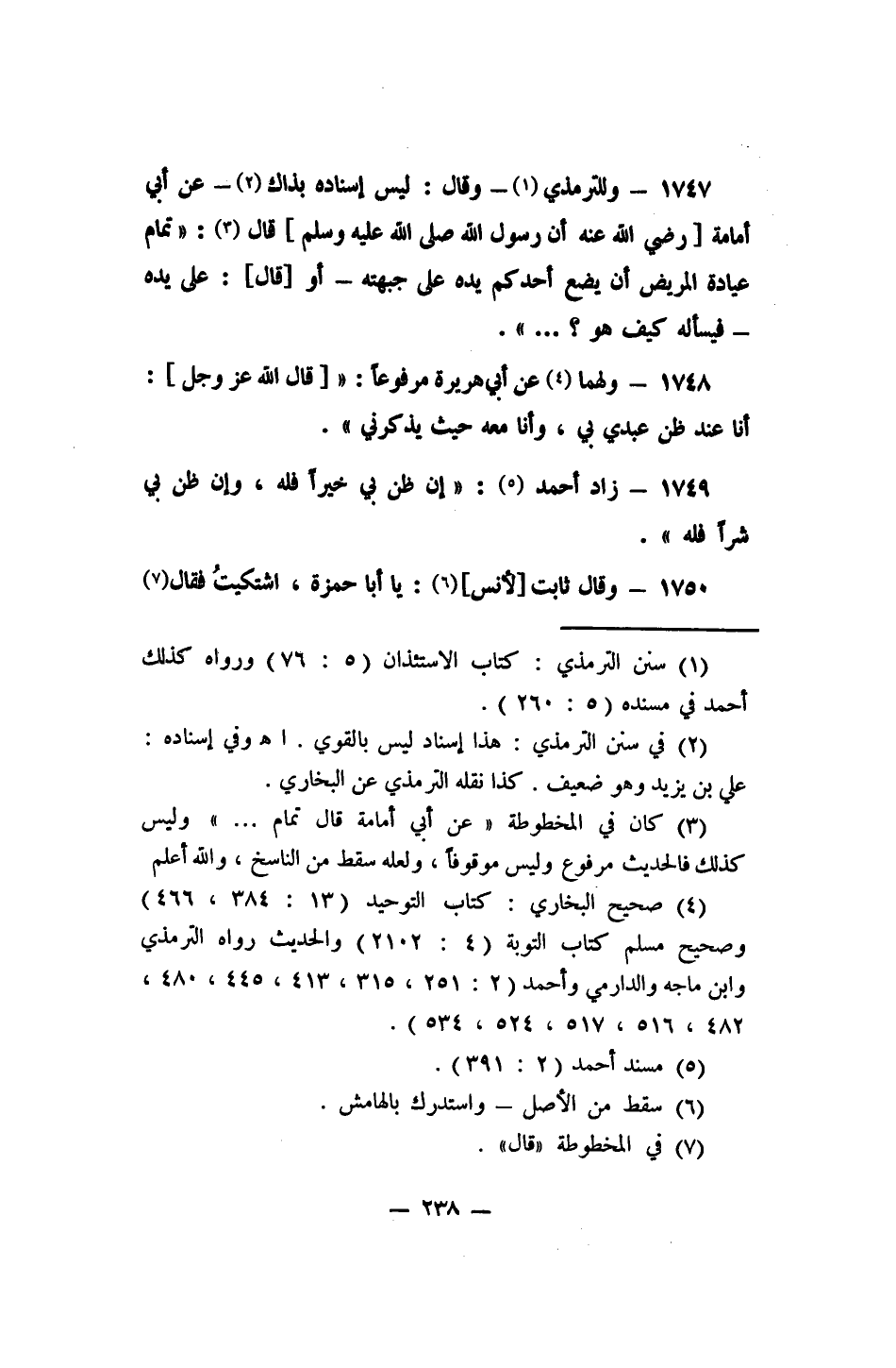 1750- وقال ثابت [لأنس] : 6 يا أبا حمزة، اشتكيت؟ فقال 7