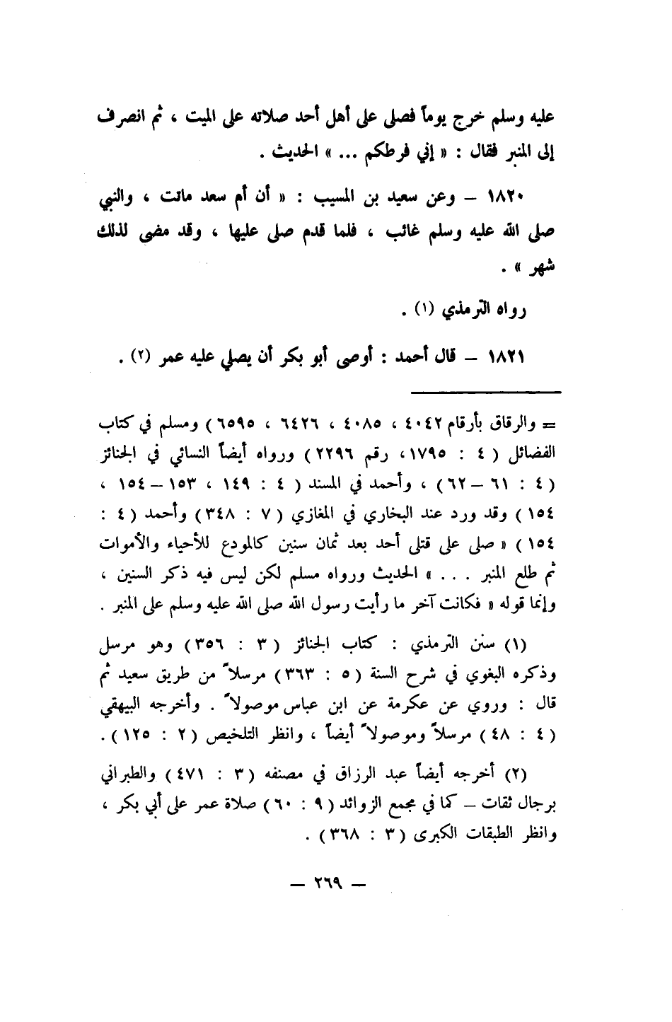 1821- قال أحمد: "أوصى أبو بكر أن يصلي عليه عمر" 2.