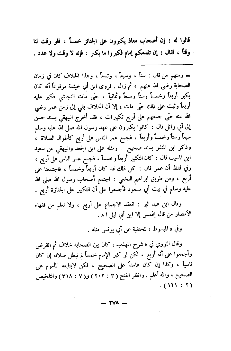 قالوا له: إن أصحاب معاذ يكبرون على الجنائز خمساً، فلو وقت لنا وقتاً، فقال: إن تقدمكم إمام فكبروا ما يكبر، فإنه لا وقت ولا عدد".