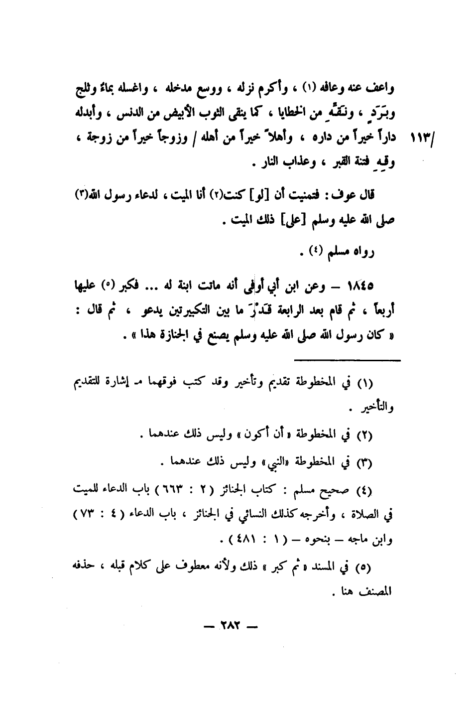 4 صحيح مسلم: كتاب الجنائز (2/663) ، باب الدعاء للميت في الصلاة, وأخرجه كذلك النسائي في الجنائز, باب الدعاء (4/73) ، وابن ماجة، بنحوه (1/481) .