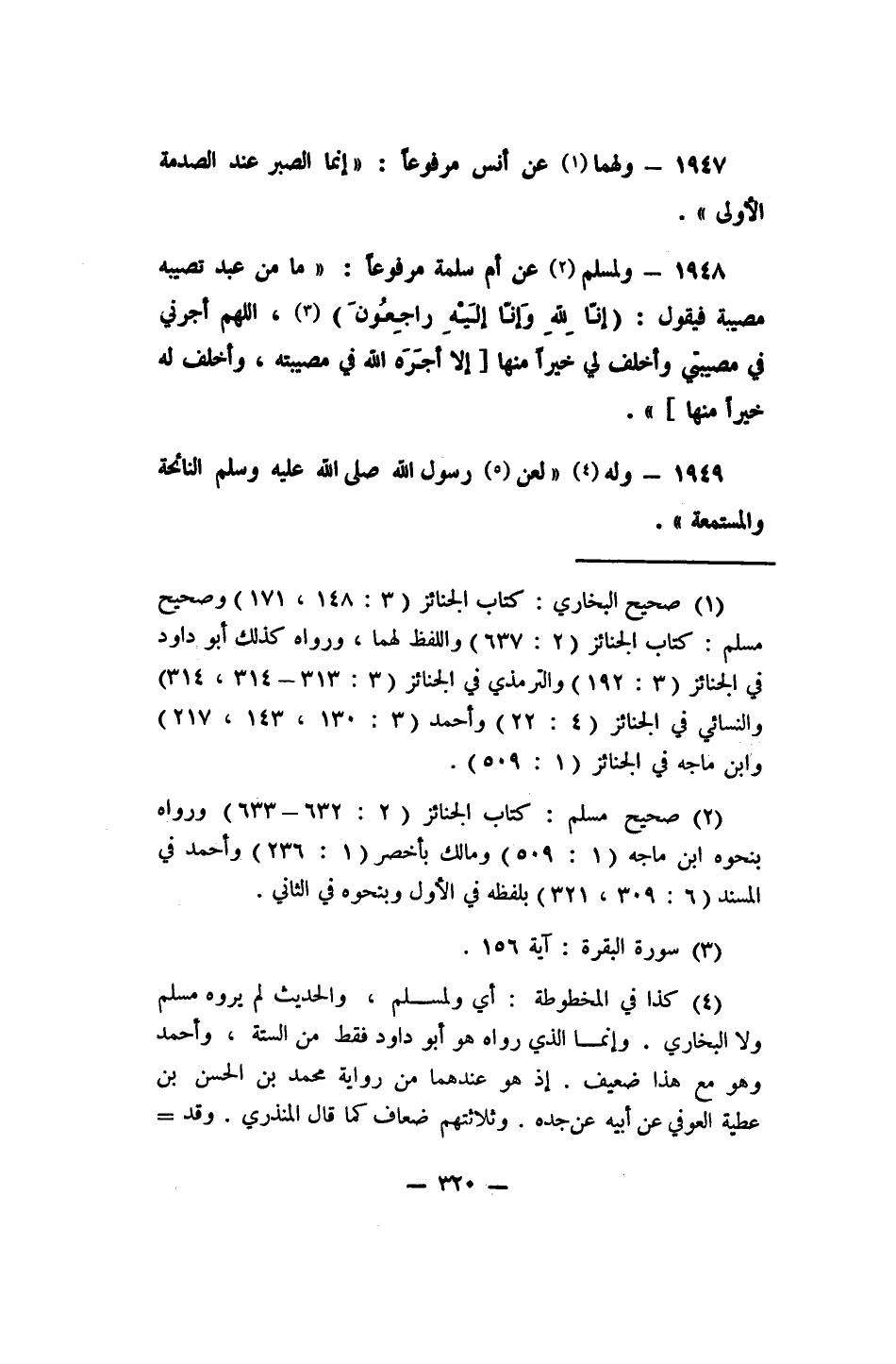 1947- ولهما 1 عن أنس، مرفوعاً: "إنما الصبر عند الصدمة الأولى".
