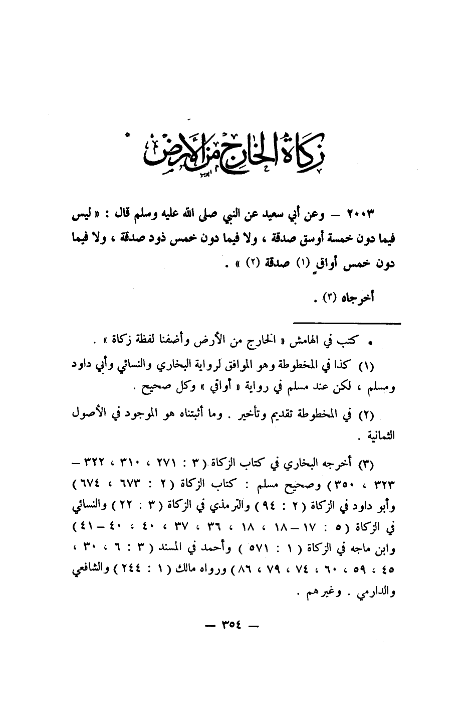 4 أخرجه البخاري في كتاب الزكاة (3/271, 310, 322، 323, 350) ، وصحيح مسلم: كتاب الزكاة (2/673, 674) ، وأبي داود في الزكاة (2/94) ، والترمذي في الزكاة (3/22) ، والنسائي في الزكاة (5/17، 18, 18, 36, 37, 40، 41) ، وابن ماجة في الزكاة (1/571) ، وأحمد في المسند (3/6, 30, 45, 59, 60, 74, 79, 86) ، ورواه مالك (1/244) ، والشافعي والدارمي، وغيرهم.