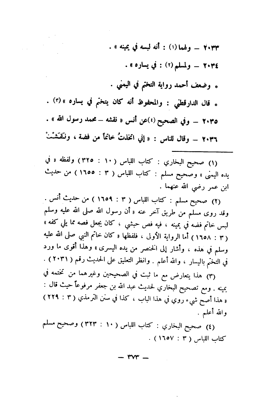 2033- ولهما: 1 "أنه لبسه في يمينه".