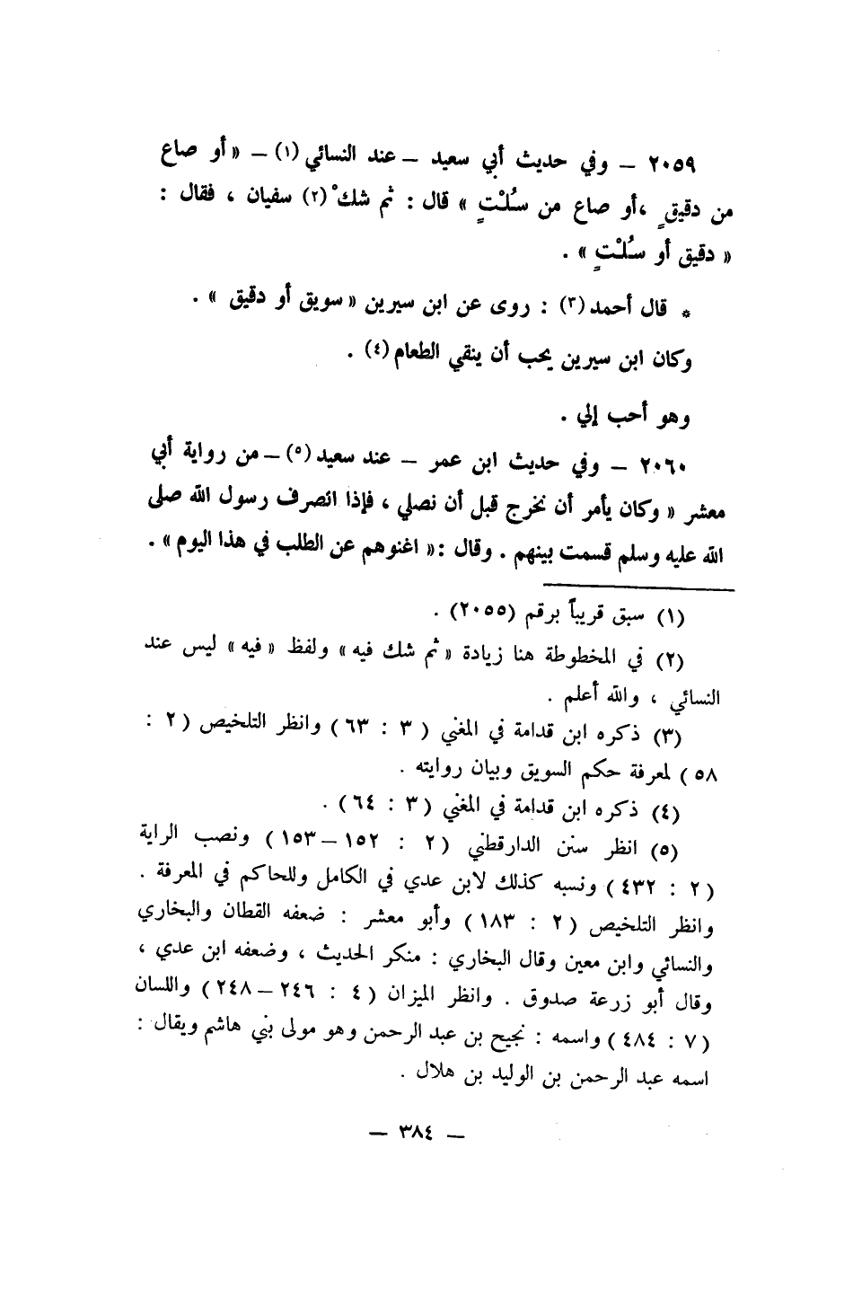 3 ذكره ابن قدامة في المغني (3/63) ، وانظر: التلخيص (2/58) لمعرفة حكم السويق وبيان روايته.