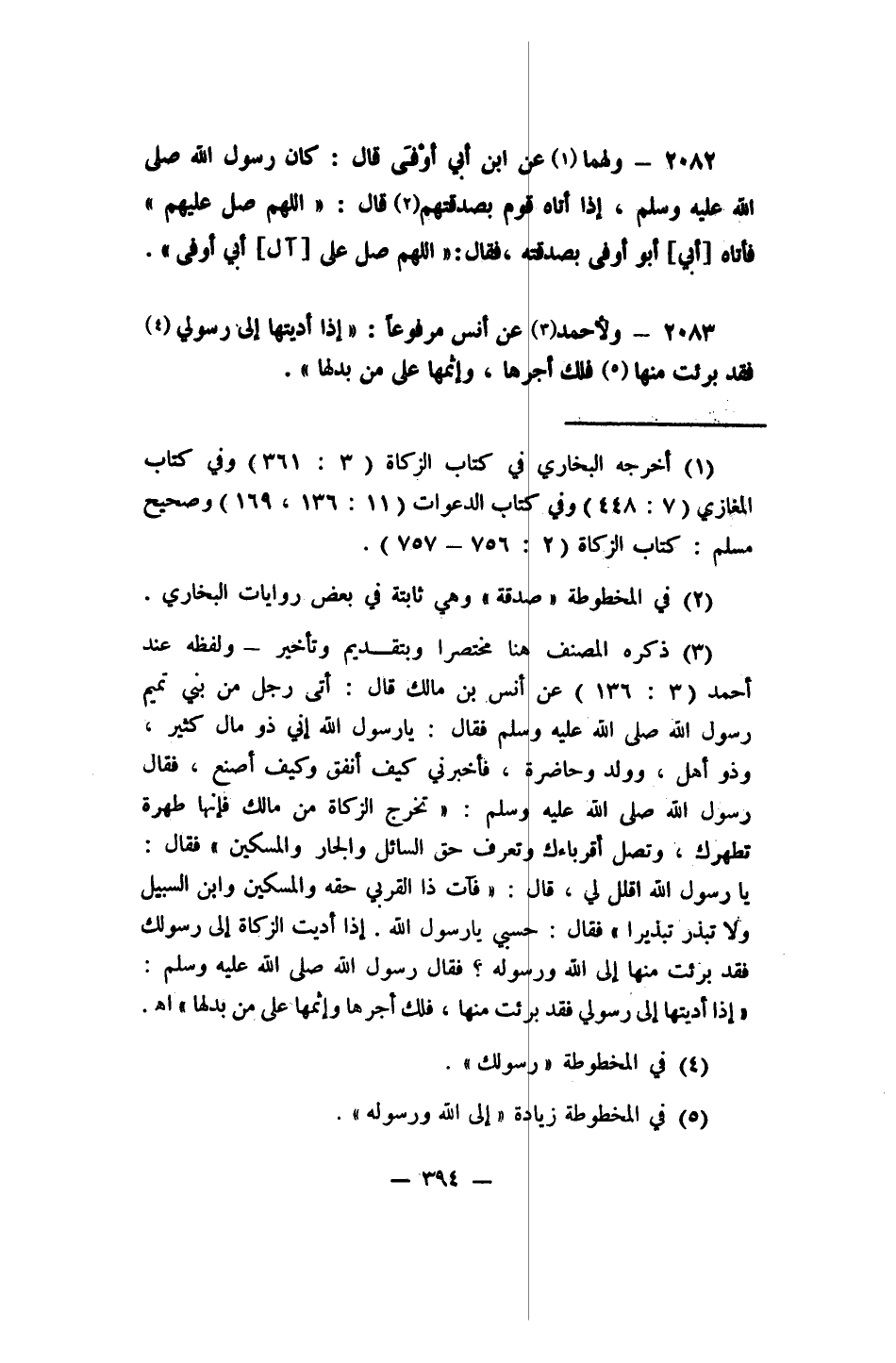 2083- ولأحمد 3 عن أنس، مرفوعاً: "إذا أديتها إلى رسولي 4 فقد برئت منها، 5 فلك أجرها، وإثمها على من بدلها".