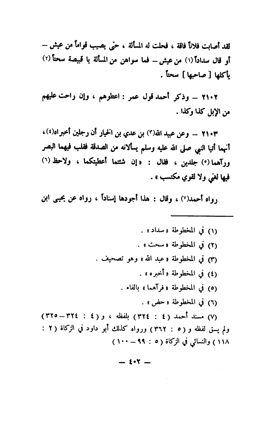 7 مسند أحمد (4/324) بلفظه, و (4/324، 325) ، ولم يسق لفظه و (5/362) ، ورواه كذلك أبو داود في الزكاة (2/118) ، والنسائي في الزكاة (5/99، 100) .