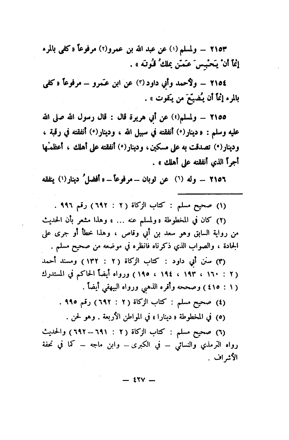 2153- ولمسلم 1 عن عبد الله بن عمرو، 2 مرفوعاً: "كفى بالمرء إثماً أنْ يُحْبِسَ عَمّن يملكُ قُوتَه".