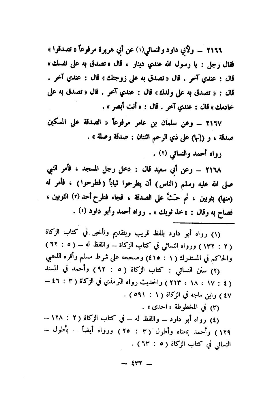 1 رواه أبو داود بلفظ قريب، وبتقديم وتأخير، في كتاب الزكاة (2/132) ، ورواه النسائي في كتاب الزكاة واللفظ له (5/62) ، والحاكم في المستدرك (1/415) ، وصححه على شرط مسلم، وأقره الذهبي.
