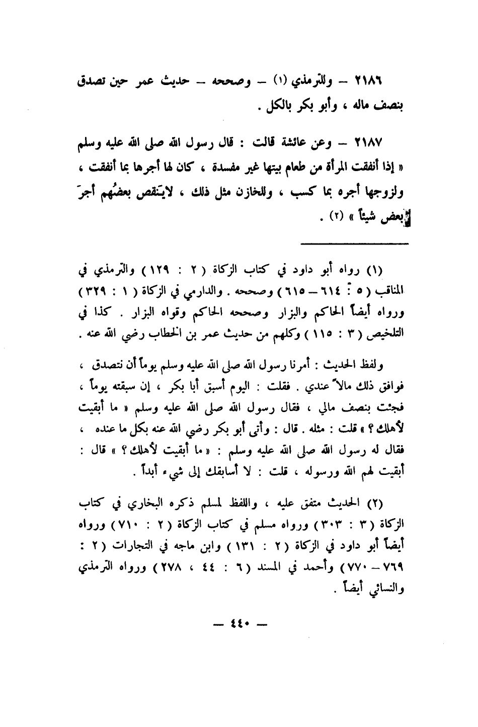 2 الحديث متفق عليه, واللفظ لمسلم، ذكره البخاري في كتاب الزكاة (3/303) ، ورواه مسلم في كتاب الزكاة (2/710) ، ورواه أيضاً أبو داود في الزكاة (2/131) ، وابن ماجة في التجارات (2/769، 770) ، وأحمد في المسند (6/44, 278) ، ورواه الترمذي والنسائي أيضاً.