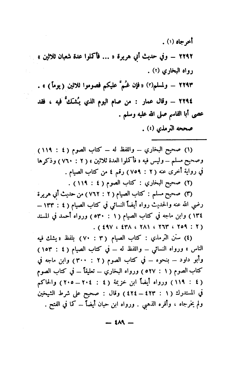 2292- وفي حديث أبي هريرة: "فأكملوا عدة شعبان ثلاثين". رواه البخاري 2.