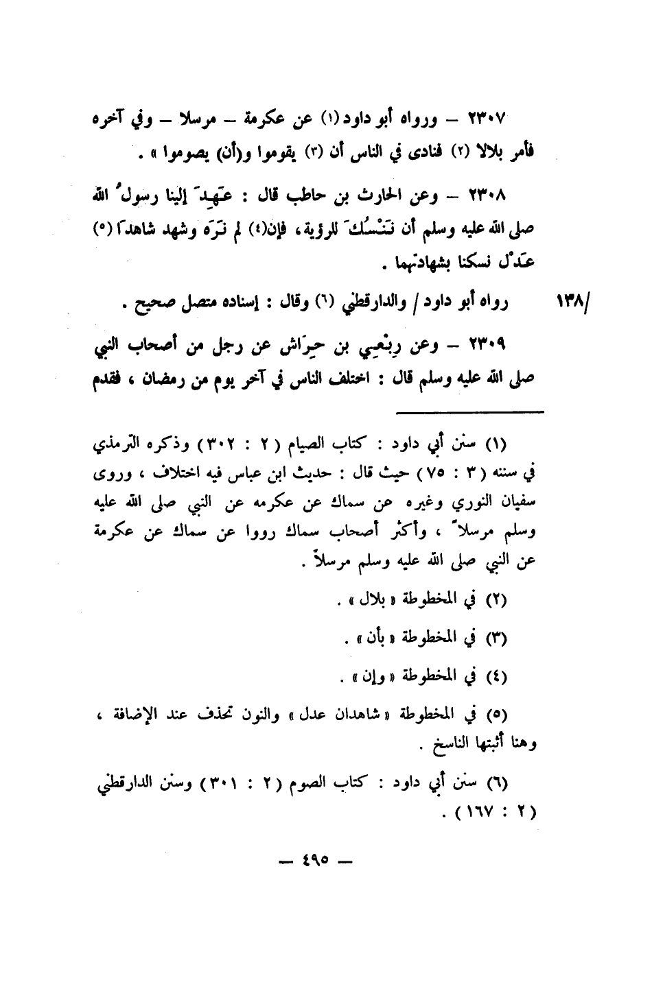 2307- ورواه أبو داود 1 عن عكرمة، مرسلا، وفي آخره: "فأمر بلالا 2 فنادى في الناس أن 3 يقوموا و (أن) 4 يصوموا".