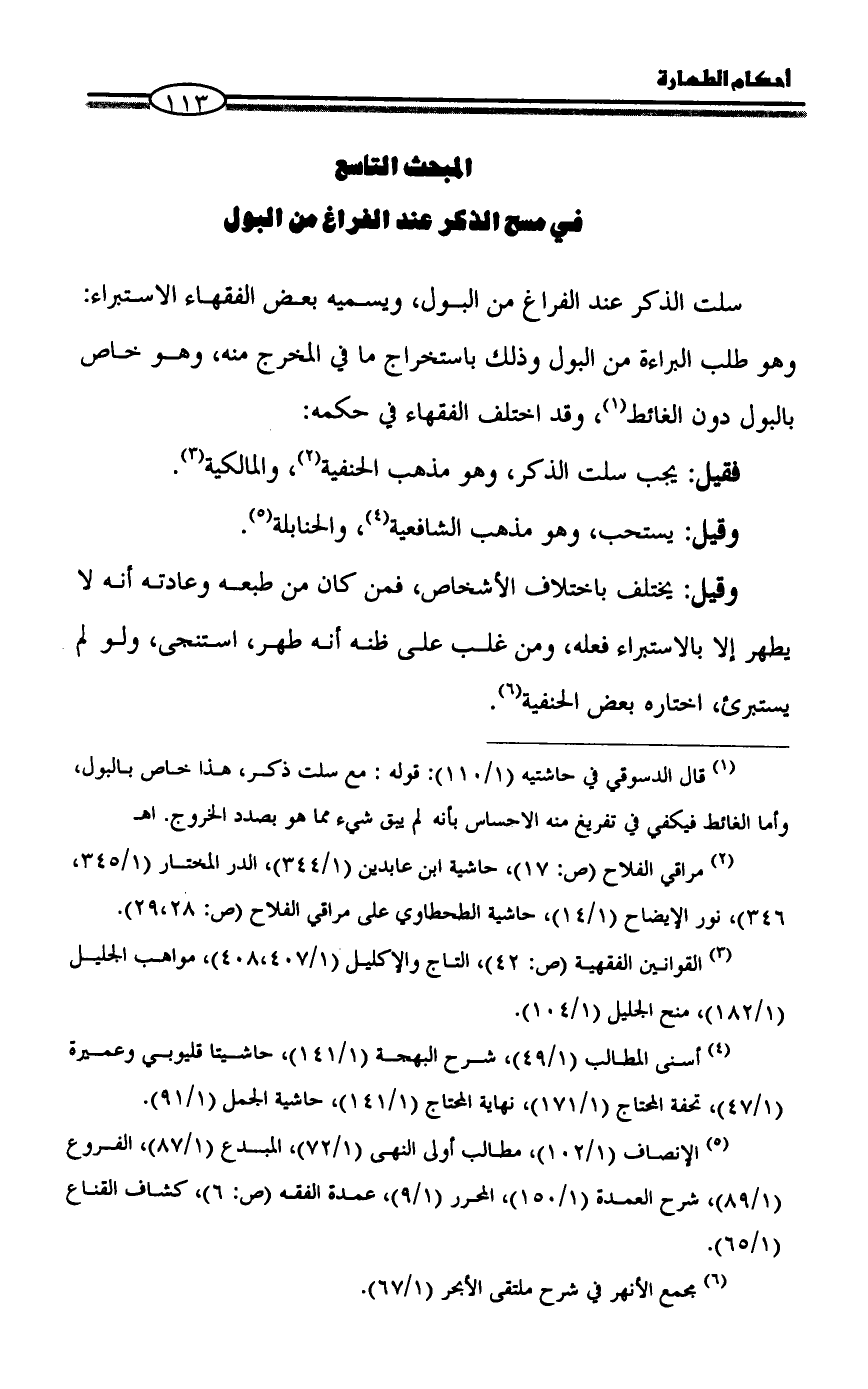 المبحث التاسع في مسح الذكر عند الفراغ من البول