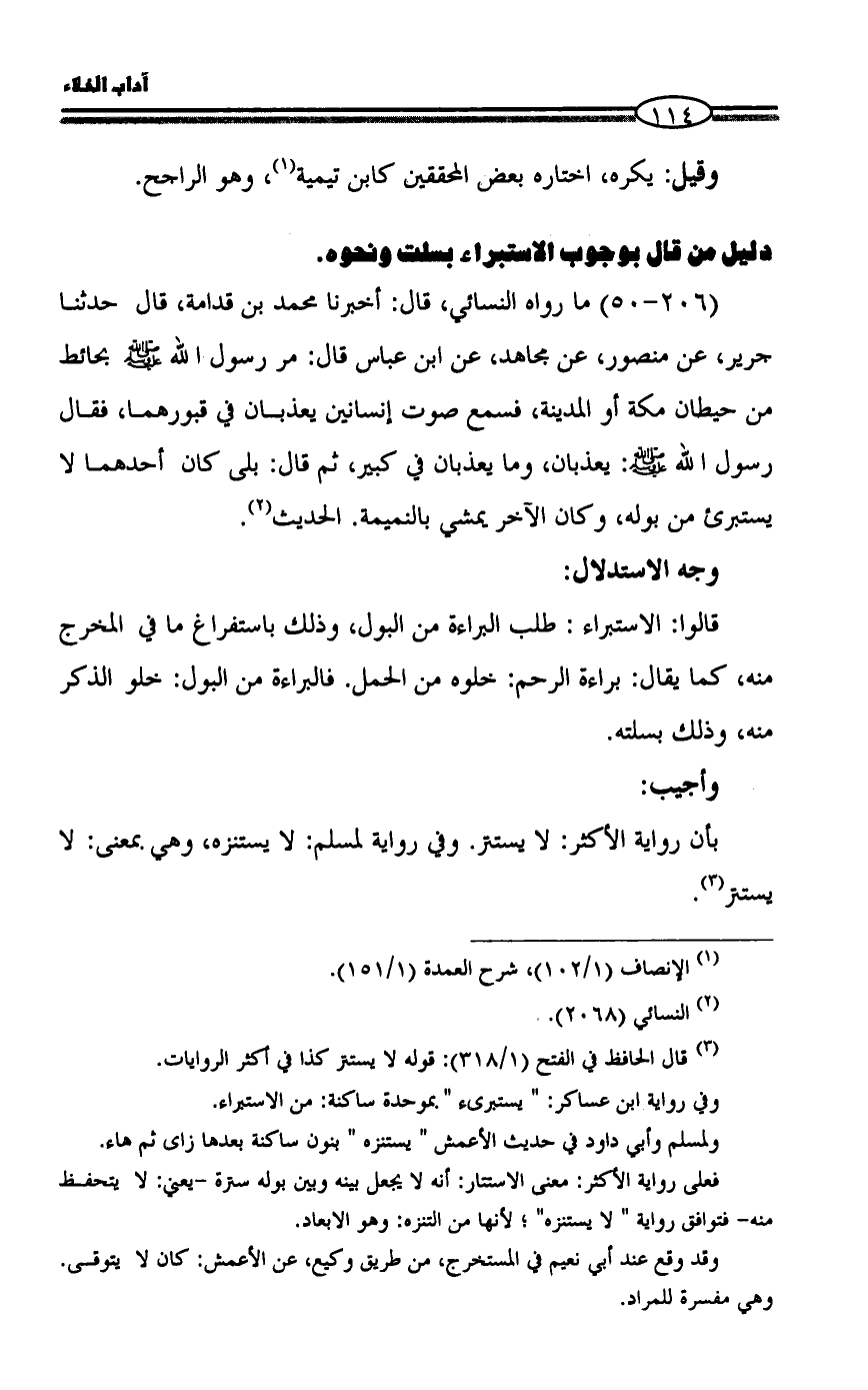 دليل من قال بوجوب الاستبراء بسلت ونحوه.
