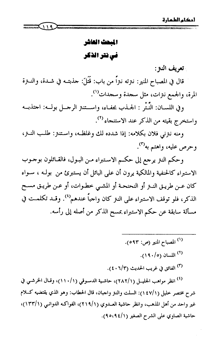 (¬٤) انظر مواهب الجليل (١/ ٢٨٢)، حاشية الدسوقي (١/ ١١٠)، وقال الخرشي في شرح مختصر خليل (١/ ١٤٧): السلت والنتر واجبان، قال الحطاب: وهو الذي يقتضيه كلام غير واحد من أهل المذهب، وانظر حاشية العدوي (١/ ٢١٩)، الفواكه الدواني (١/ ١٣٣)، حاشية الصاوي على الشرح الصغير (١/ ٩٤، ٩٥).