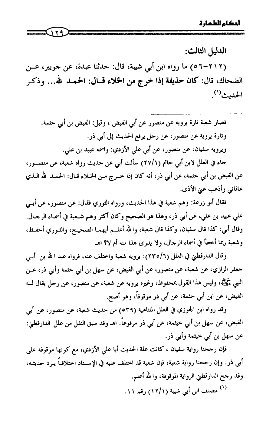 (¬١) مصنف ابن أبي شيبة (١/ ١٢) رقم ١١.