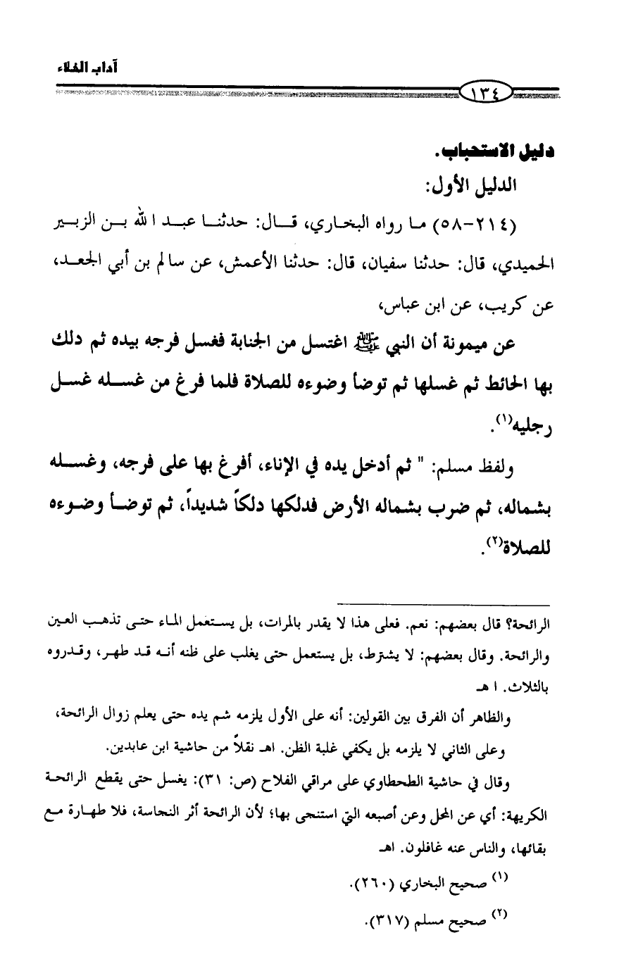 (٢١٤ - ٥٨) ما رواه البخاري، قال: حدثنا عبد الله بن الزبير الحميدي، قال: حدثنا سفيان، قال: حدثنا الأعمش، عن سالم بن أبي الجعد، عن كريب، عن ابن عباس،
