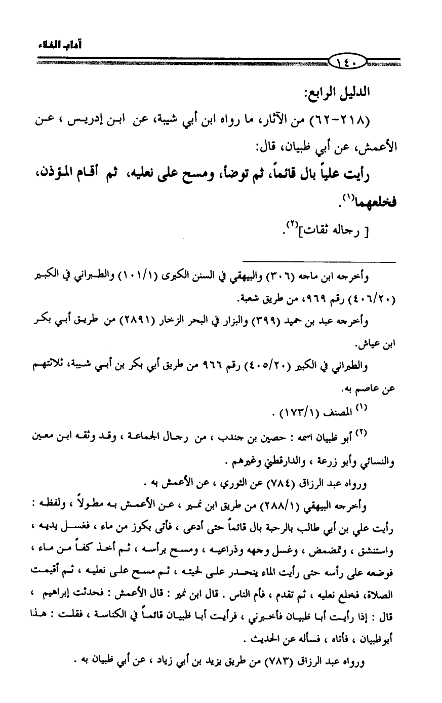 (٢١٨ - ٦٢) من الآثار، ما رواه ابن أبي شيبة، عن ابن إدريس، عن الأعمش، عن أبي ظبيان، قال: