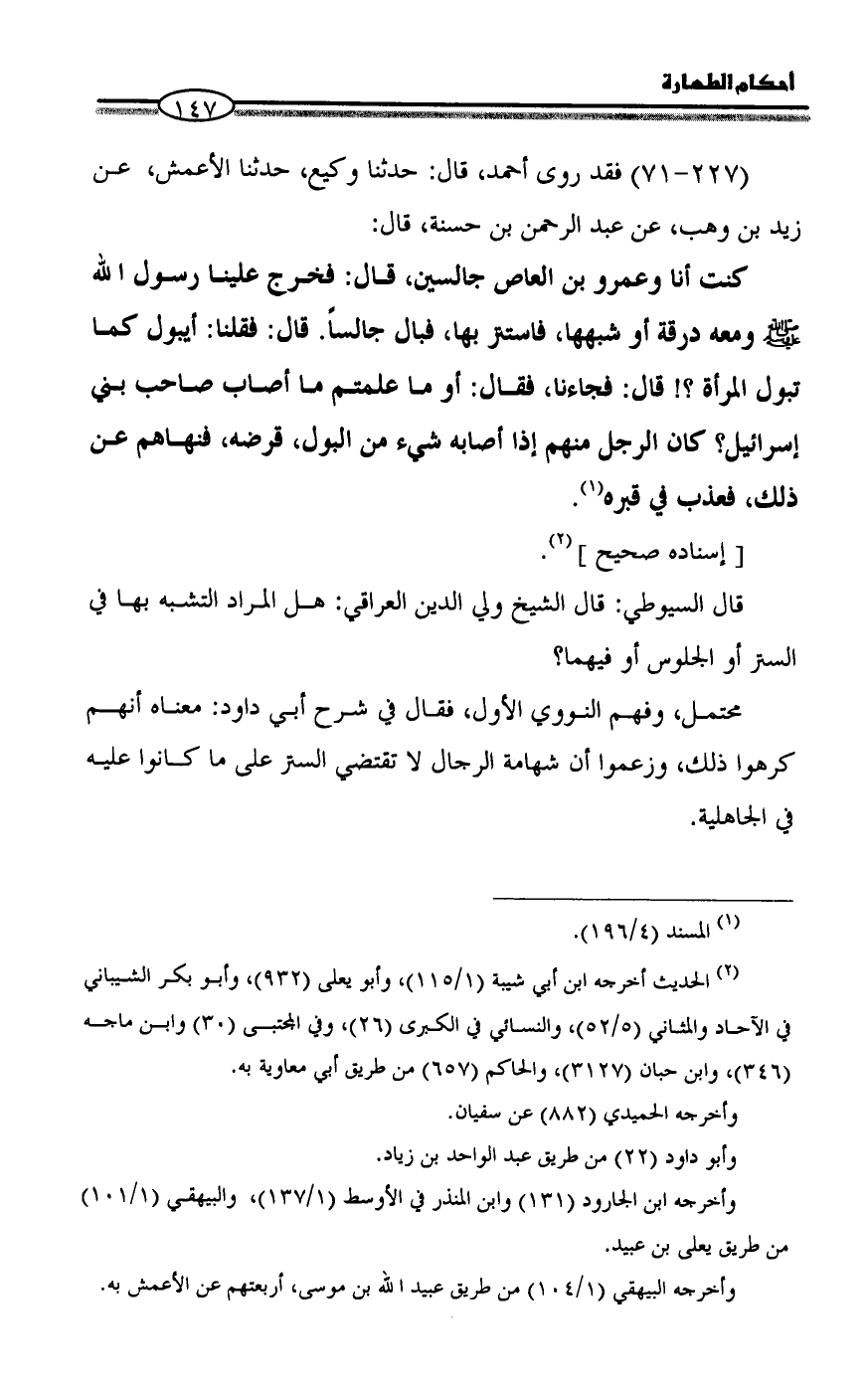 (٢٢٧ - ٧١) فقد روى أحمد، قال: حدثنا وكيع، حدثنا الأعمش، عن زيد بن وهب، عن عبد الرحمن بن حسنة، قال: