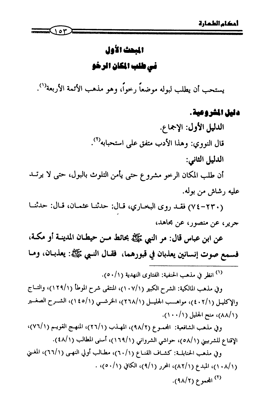 وفي مذهب الحنابلة: كشاف القناع (١/ ٦٠)، مطالب أولي النهى (١/ ٦٦)، المغني (١/ ١٠٨)، المبدع (١/ ٨٢)، المحرر (١/ ٩)، الكافي (١/ ٥٠)،.
