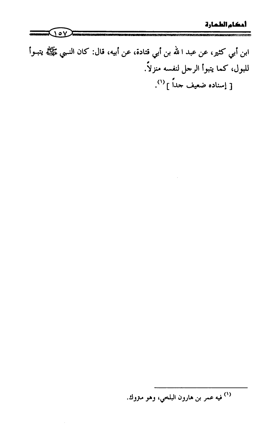 بن أبي كثير، عن عبد الله بن أبي قتادة، عن أبيه، قال: كان النبي - صلى الله عليه وسلم - يتبوأ للبول، كما يتبوأ الرجل لنفسه منزلاً.