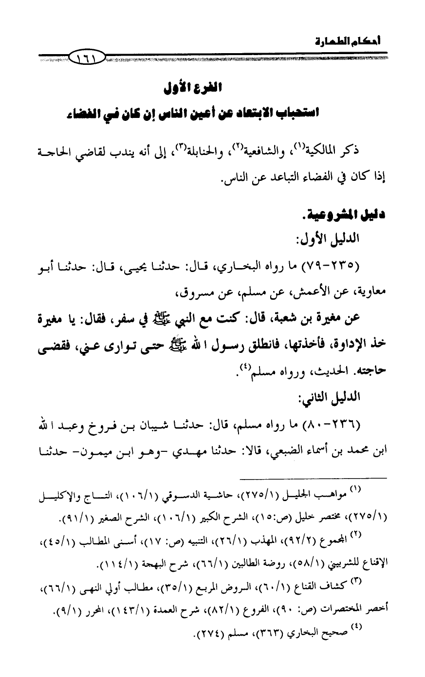 الفرع الأول استحباب الابتعاد عن أعين الناس إن كان في الفضاء
