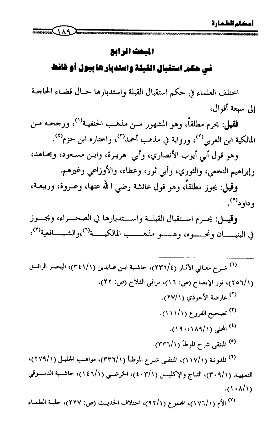 المبحث الرابع في حكم استقبال القبلة واستدبارها ببول أو غائط