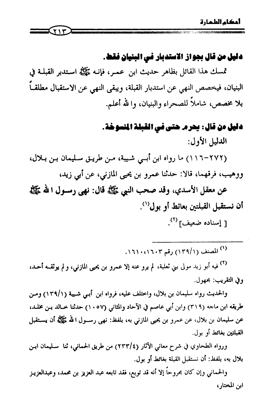 دليل من قال بجواز الاستدبار في البنيان فقط.