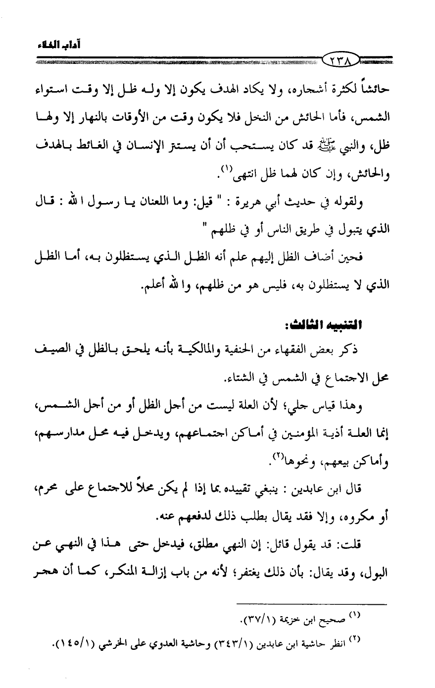 (¬٢) انظر حاشية ابن عابدين (١/ ٣٤٣) وحاشية العدوي على الخرشي (١/ ١٤٥).