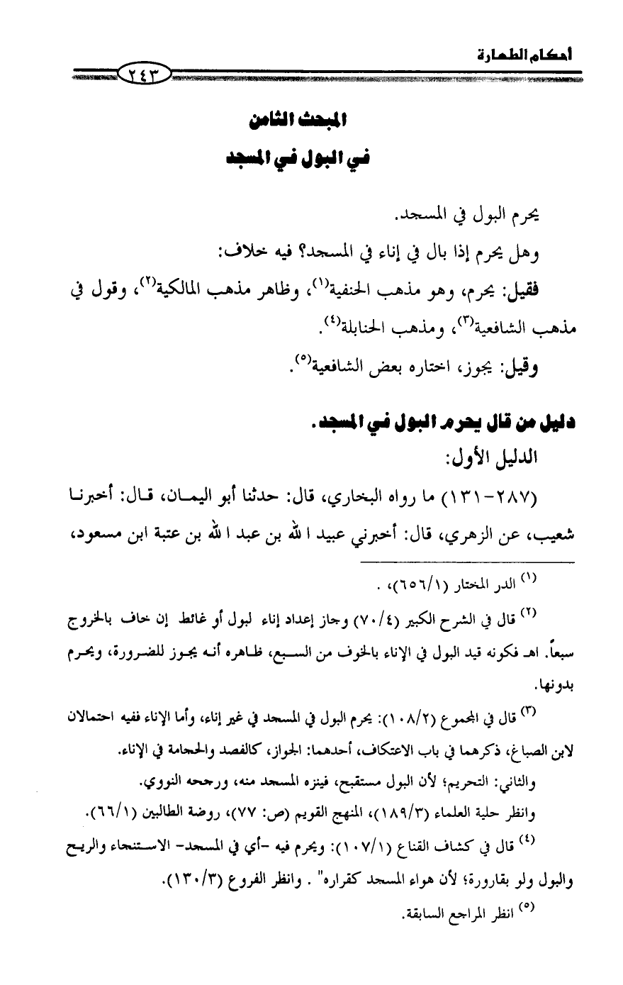 المبحث الثامن في البول في المسجد