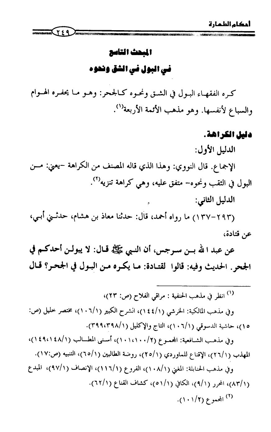 الإجماع. قال النووي: وهذا الذي قاله المصنف من الكراهة -يعني: من البول في الثقب ونحوه- متفق عليه، وهي كراهة تنزيه (¬٢).