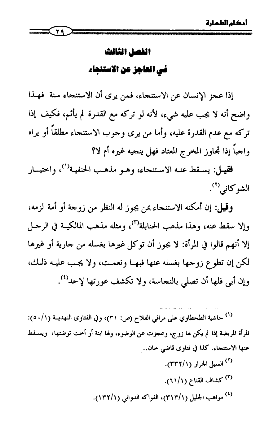 الفصل الثالث في العاجز عن الاستنجاء