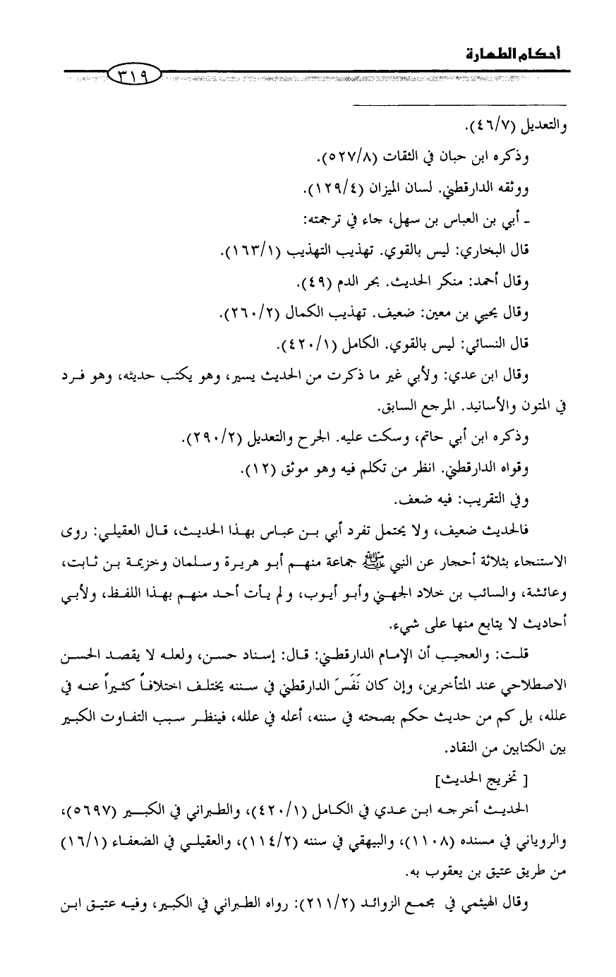 وقواه الدارقطني. انظر من تكلم فيه وهو موثق (١٢).