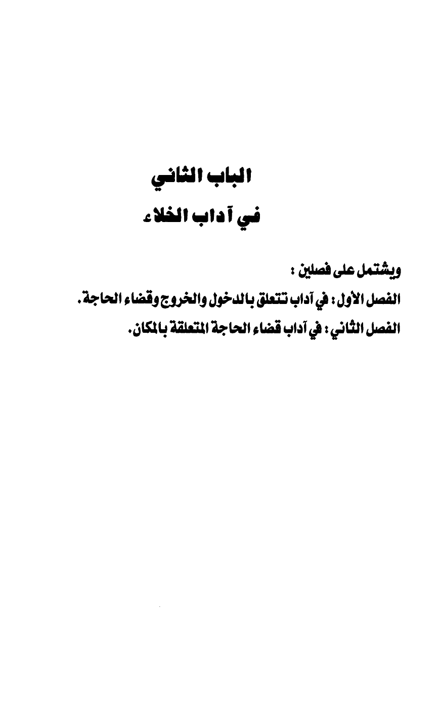 الفصل الثاني: في آداب قضاء الحاجة المتعلقة بالمكان.