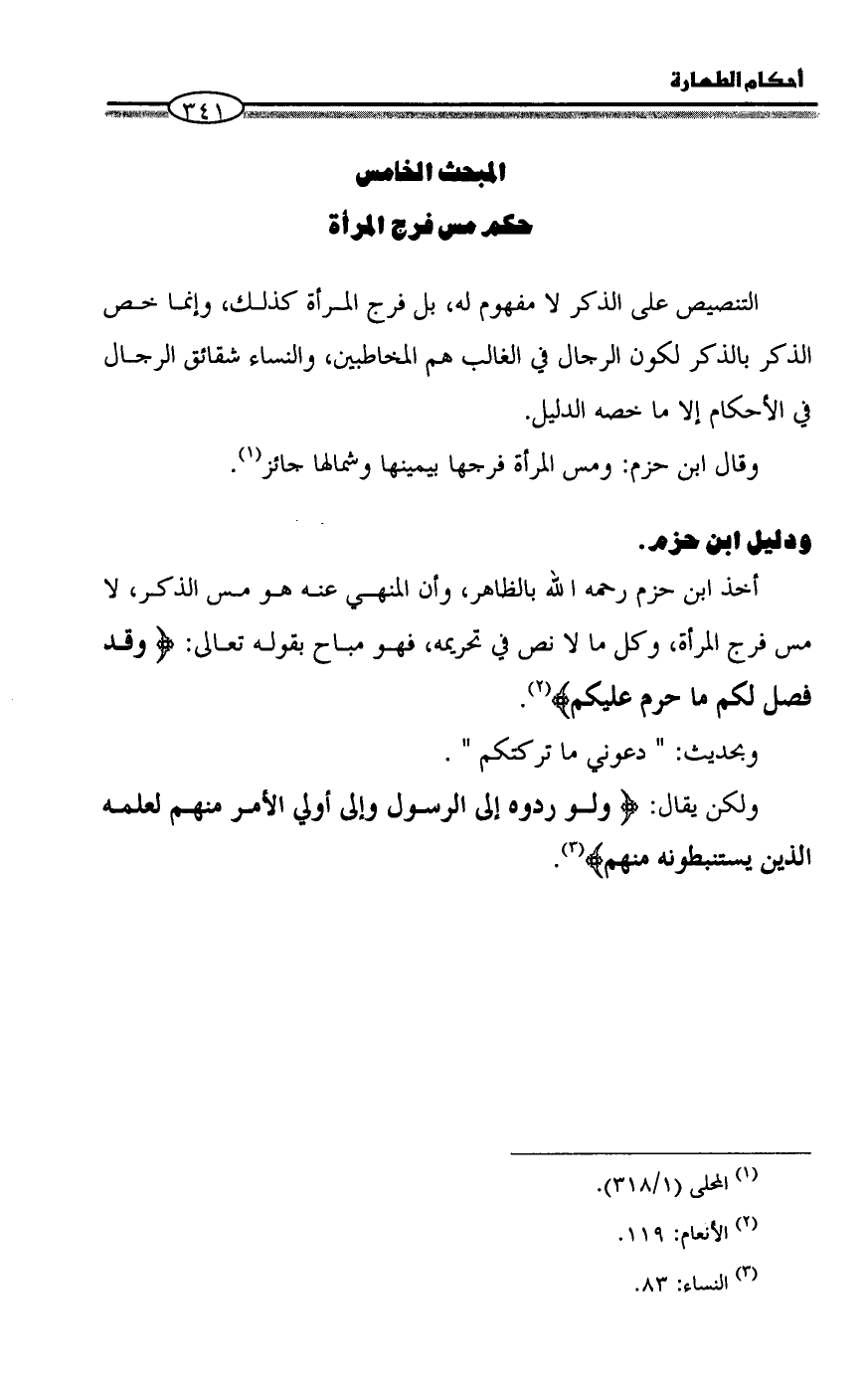(¬١) المحلى (١/ ٣١٨).