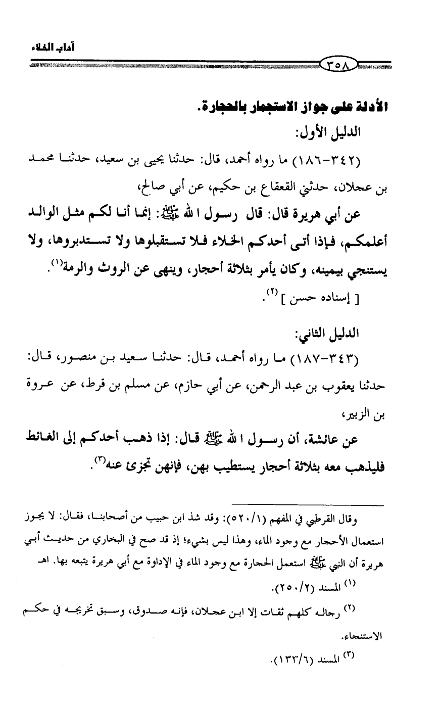 الأدلة على جواز الاستجمار بالحجارة.