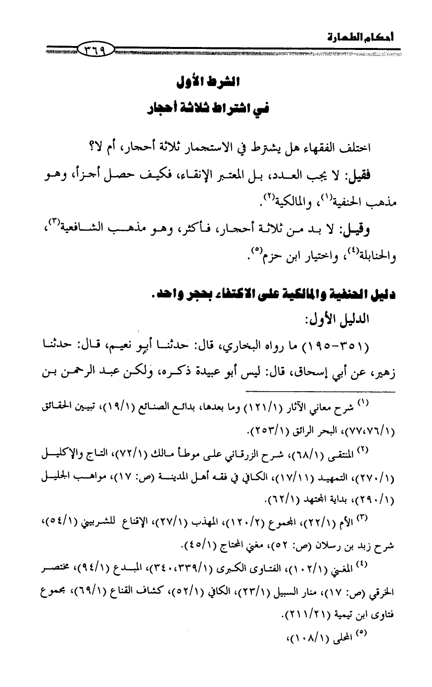 في اشتراط ثلاثة أحجار